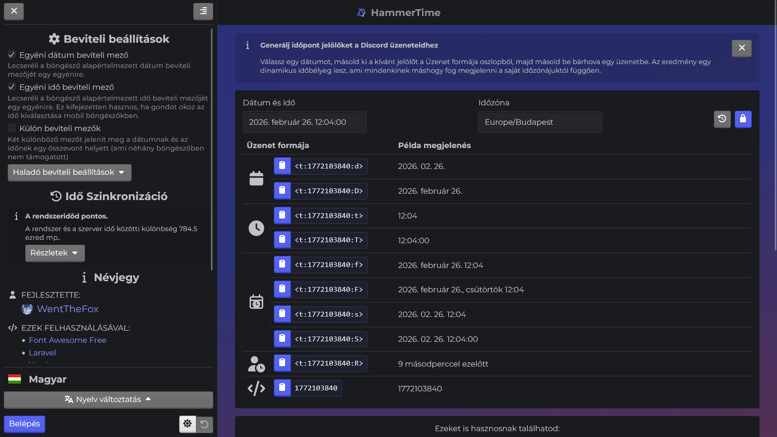 The project was originally created to make it easier for me to use Discord's timestamp syntax for messages. It allows a point in time to be shown for people in their device's own timezone, making organizing international events on the platform easier.